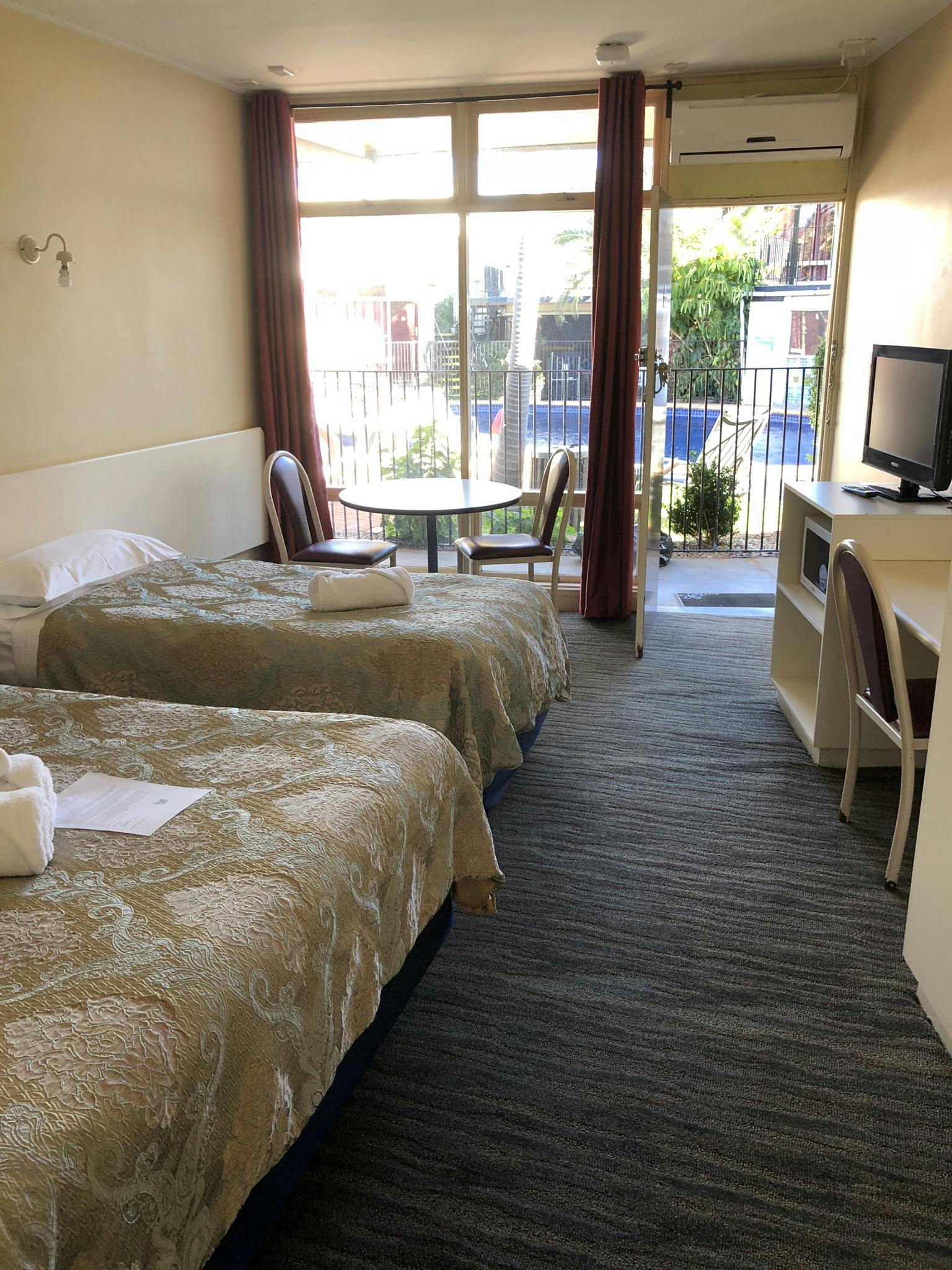 The Standard Twin Room consists of 1 x Queen Bed and 1 x Single Bed a basic bathroom with walk in shower, tea and coffee making facilities, toaster, microwave, split system air-conditioning, flat screen TV, FREE WiFi and bar fridge.